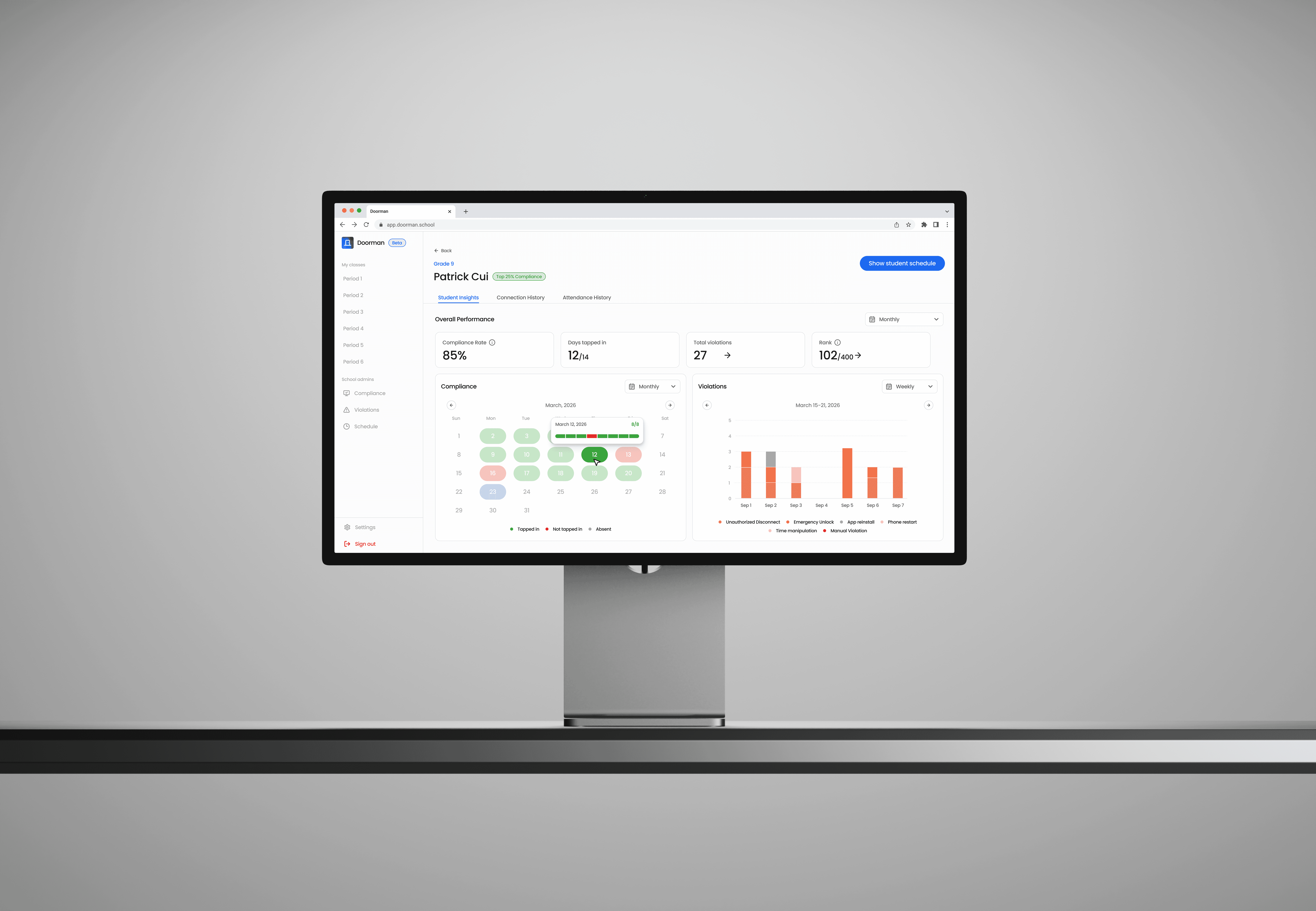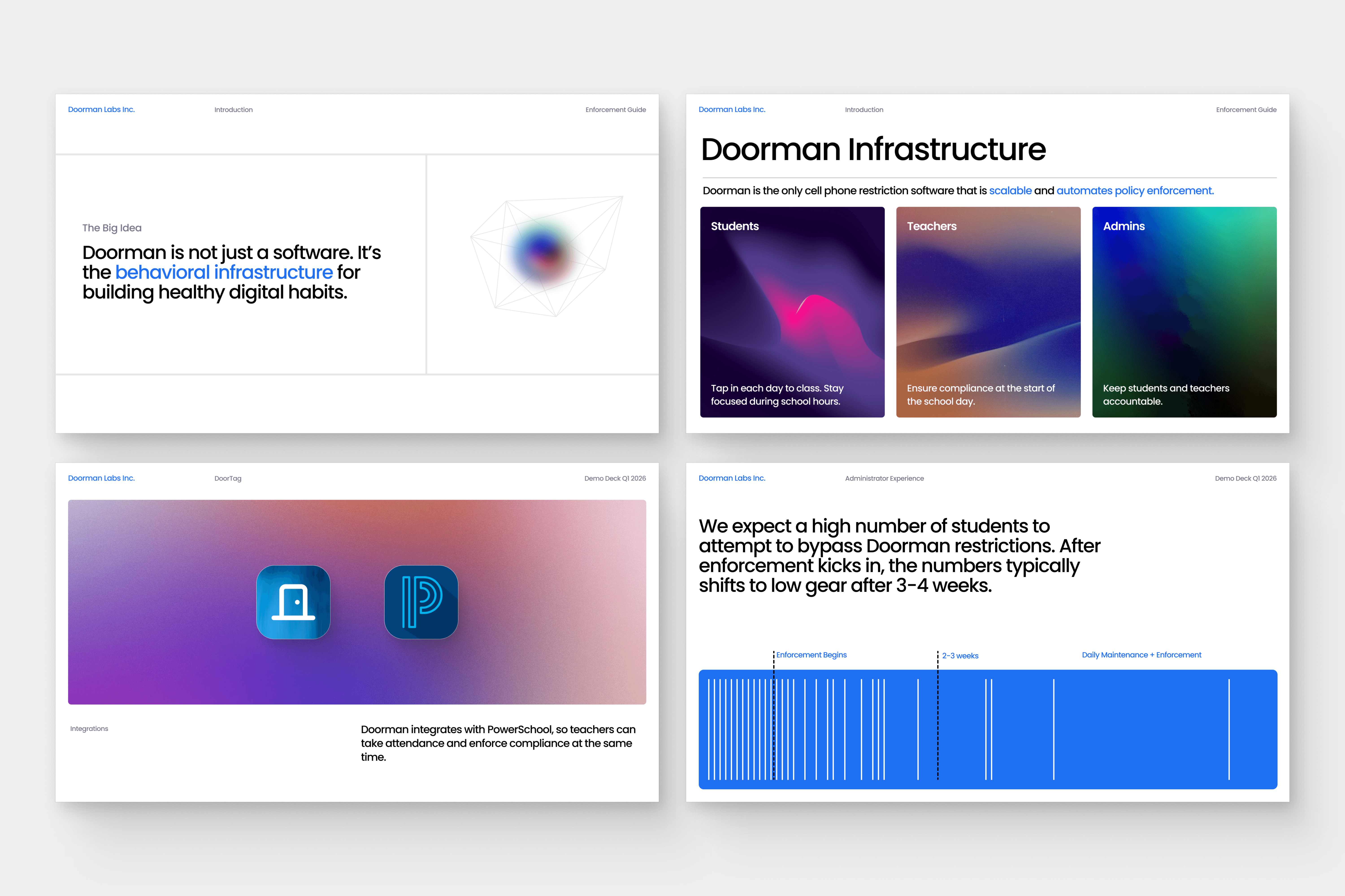 Doorman helps schools block cell phone distractions and automate attendance workflows. Our mission is to help schools operate 10 years ahead, not 10 years behind.